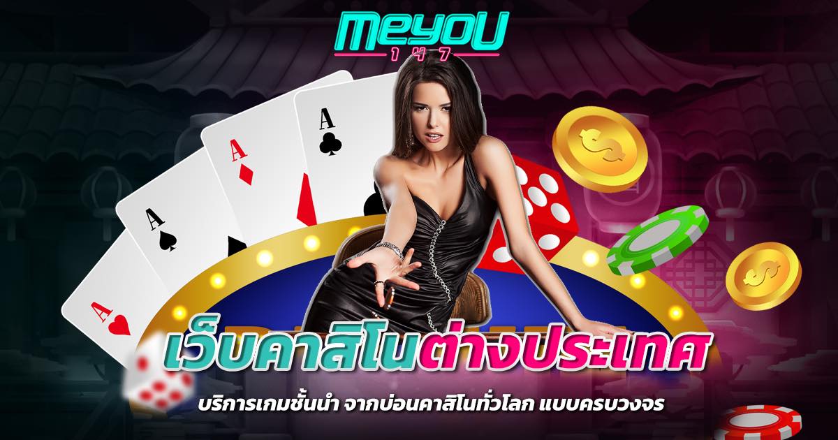 เว็บคาสิโนต่างประเทศ เป็นอีกหนึ่งความสนุกรูปแบบใหม่ ที่ไม่ว่าผู้เล่นจะอยู่ที่ไหน ก็สามารถหารายได้เสริมไว้ใช้จ่ายได้แบบง่ายๆ โดยไม่ต้องข้ามน้ำข้ามทะเล ไปถึงต่างประเทศให้ยุ่งยาก เนื่องจากปัจจุบันนี้ มี เว็บตรงจากต่างประเทศ มากมาย มาให้ผู้เล่นได้เลือกลงทุนแบบไม่อั้น ถือเป็นแหล่งรวมเกมจากคาสิโนชั้นนำแบบครบวงจร ส่งตรงจากบ่อนทั่วโลก สามารถเข้าบริการ เว็บคาสิโนต่างประเทศ ผ่าน MEYOU147 กันได้เลย ทางเข้าเล่นสำหรับคนยุคใหม่ ที่ชอบเสี่ยงโชค หรืออยากจะเดิมพันเพื่อหากำไรเข้ากระเป๋าตนเอง และยังเป็น เว็บคาสิโนออนไลน์อันดับ1ของโลก ศูนย์เกมคาสิโนแบรนด์ดังระดับชั้นนำ ที่มีให้เลือกมากกว่า 30 ค่าย ถือว่าเหมาะแก่การลงทุนมากที่สุด ที่ผู้เล่นจากทั่วโลกไว้วางใจ ที่จะเลือกเข้ามาใช้บริการกับ เว็บคาสิโนต่างประเทศ อีกด้วย