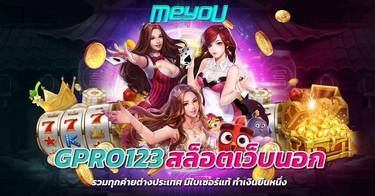 GPRO123 สล็อตเว็บนอก แหล่งทำเงินที่มีเกมสล็อต ให้เลือกครบทุกรูปแบบ ยกมาทุกค่ายชั่นนำจากทั่วโลก หลากหลายประเทศด้วยกัน ไม่ต้องเล่นเพียงค่ายเดียว หรือเกมเดียวตลอดการเดิมพัน ผู้เล่นสามารถเลือกลงทุนได้รูปแบบ ที่ให้บริการในเว็บแห่งนี้ ถือเป็นจุดศูนย์ รวมค่ายสล็อตเว็บตรง ที่ใหญ่ที่สุดเลยก็ว่าได้ พร้อมที่ส่งต่อความสนุกให้กับผู้เล่นทันที เมื่อเข้าเล่นกับ GPRO123 สล็อตเว็บนอก จะสร้างรายได้ให้กับตัวเองได้ตามต้องการ ยิ่งเล่นมาก ยิ่งมีโอกาสได้กำไรที่สูง รับประกันเลยว่า จะเจอแต่เกมสล็อตที่ให้ค่าตอบแทนสุดคุ้ม กับการลงทุนอย่างแน่นอน อีกทั้ง ยังได้ทำการจดลิขสิทธิ์แท้ อย่างถูกต้อง GPRO123 สล็อตเว็บนอก มีใบเซอร์ รับรอง สามารถร่วมเดิพมันได้อย่างถูกกฎหมายทุกประการ